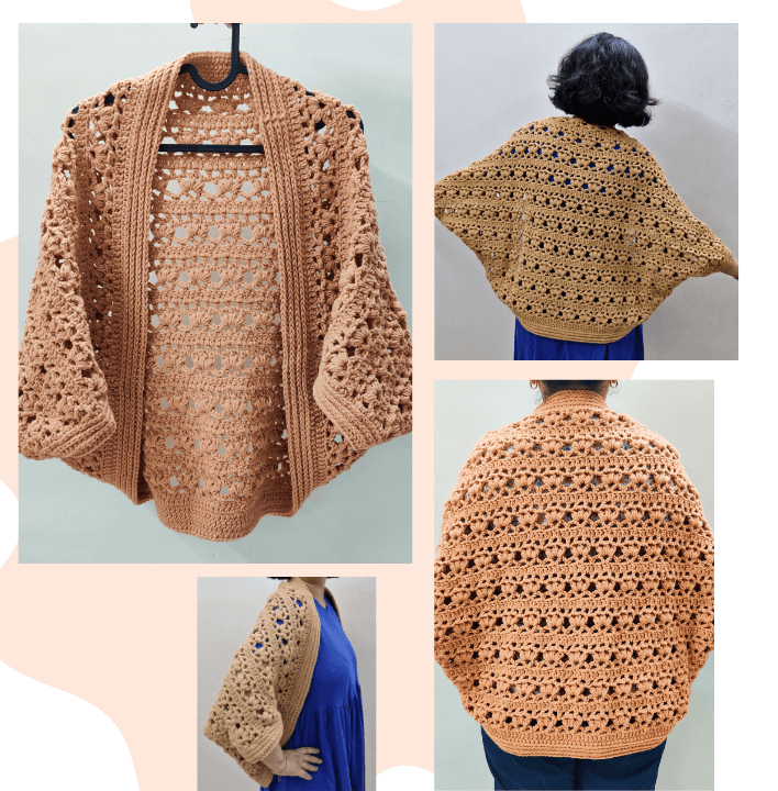 Lacy stitches, cozy drape, and an effortless boho vibe — a beginner-friendly cardigan made from a simple rectangle with no shaping required. Stylish, versatile, and perfect for layering this season.